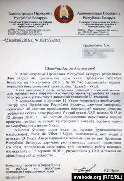 Адміністрацыя Лукашэнкі адказала на запыт Свабоды. У дазволе ААЦ на выкарыстаньне Skype і Viber пасьля іх фактычнай забароны ўказам Лукашэнкі там ня бачаць нічога дзіўнага.