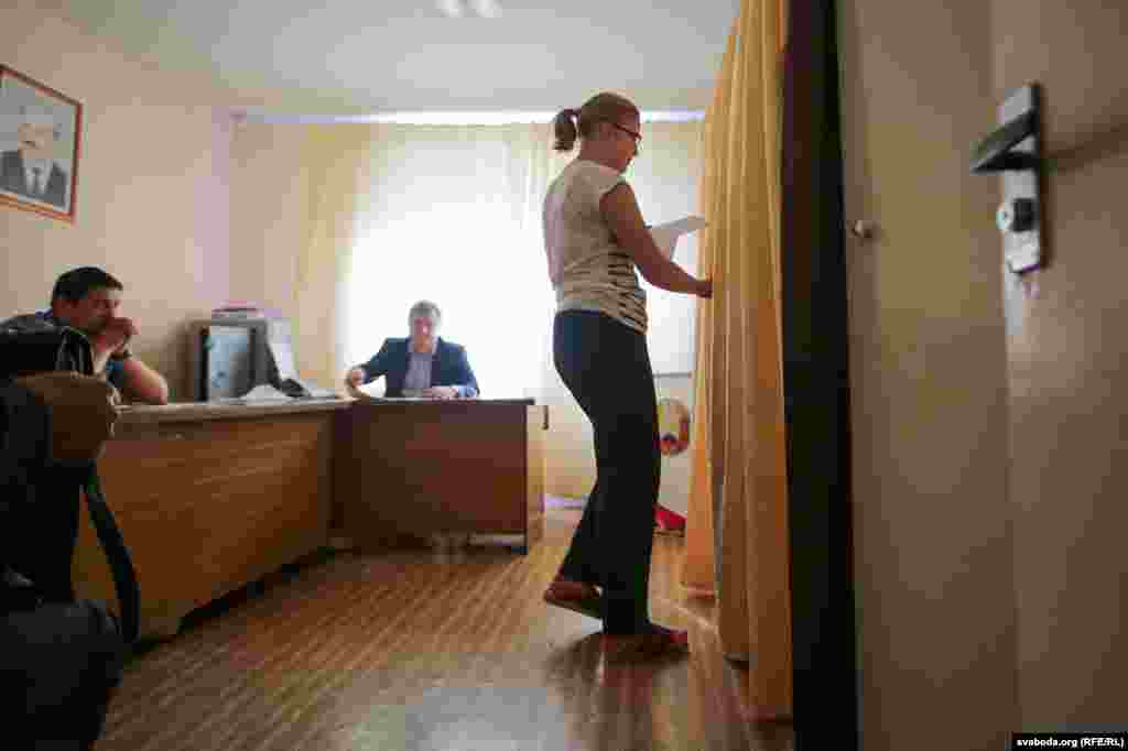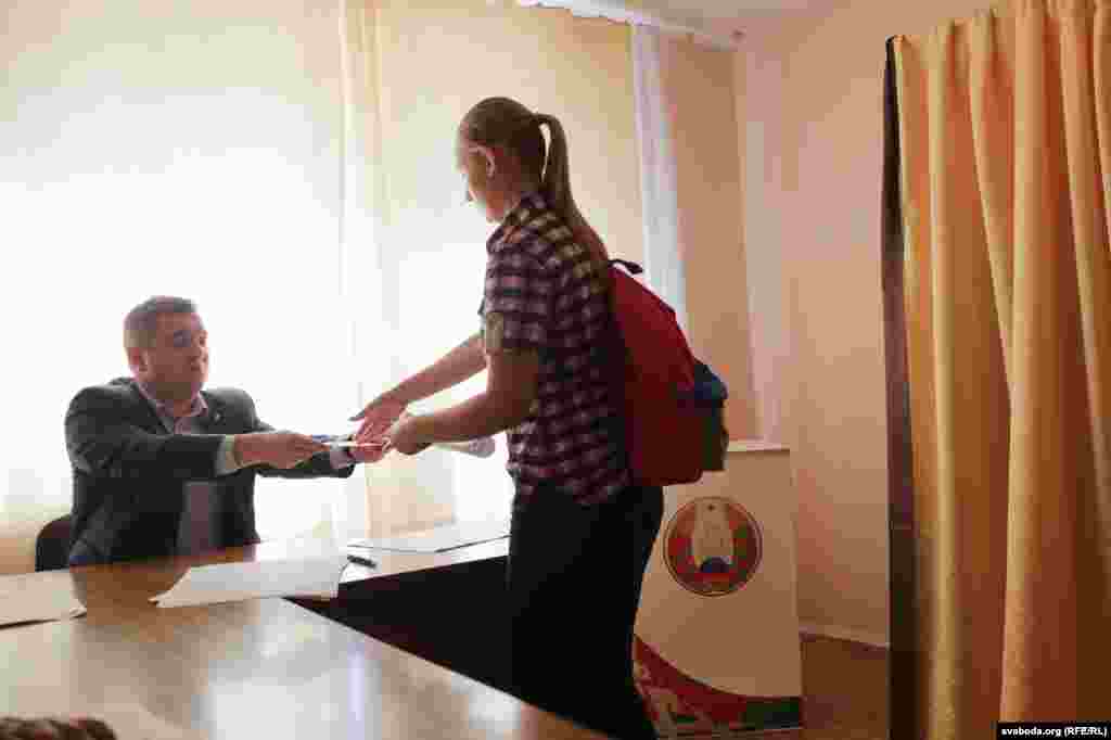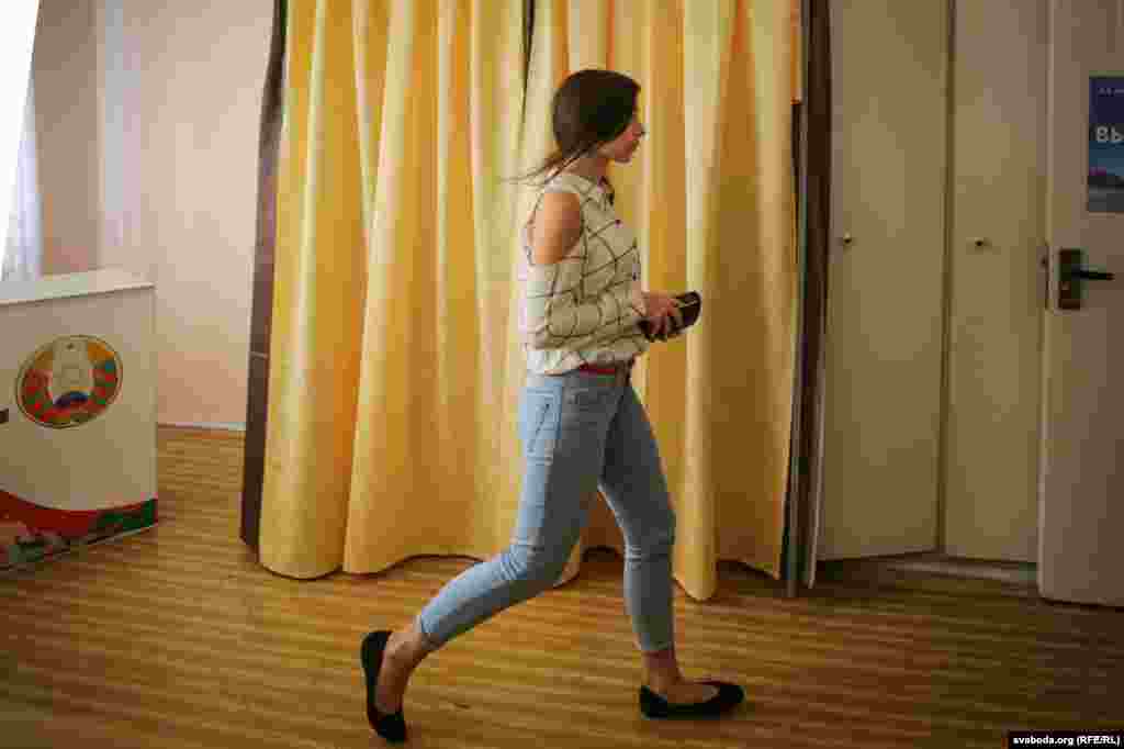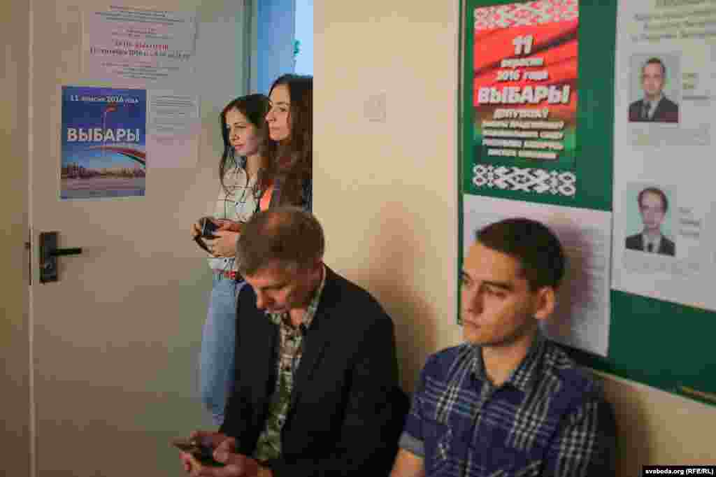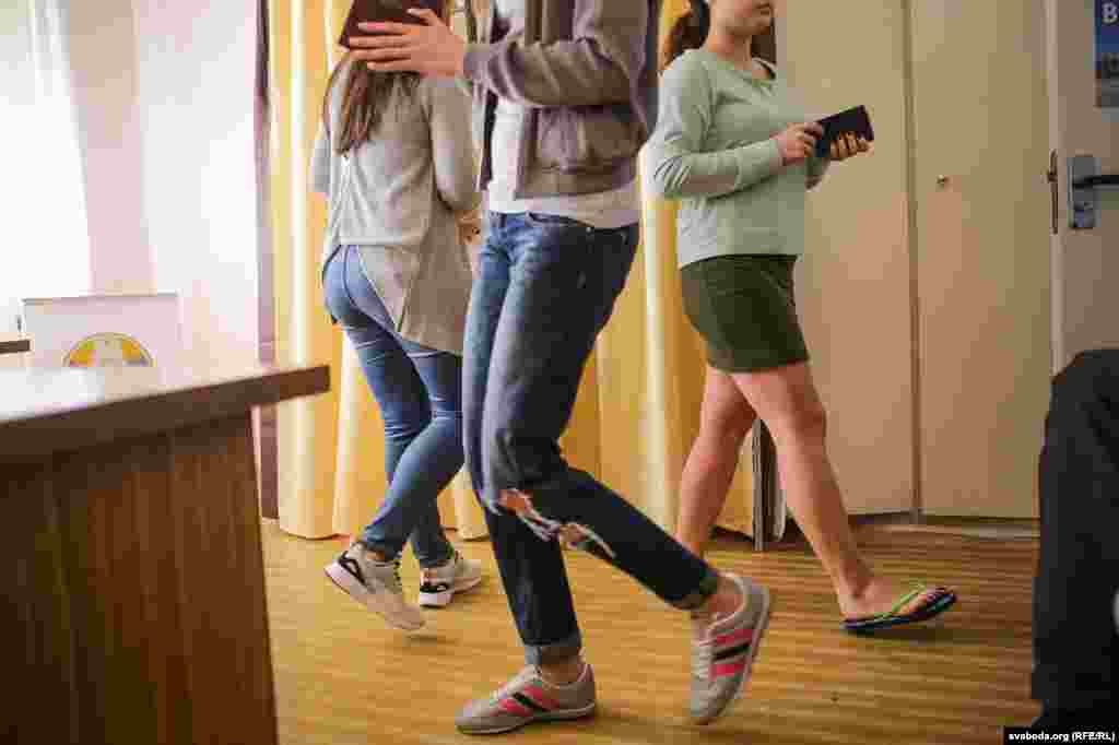 На выбарчы ўчастак у інтэрнаце БДУ № 10 на вуліцы Курчатава з раніцы пацягнуліся студэнты — у спартовых гарнітурах, тапачках. Уражаньне, што толькі ўсталі з ложка. Сам участак — у невялікім пакоі, нават міліцыянту не хапіла месца — сядзіць у калідорчыку.