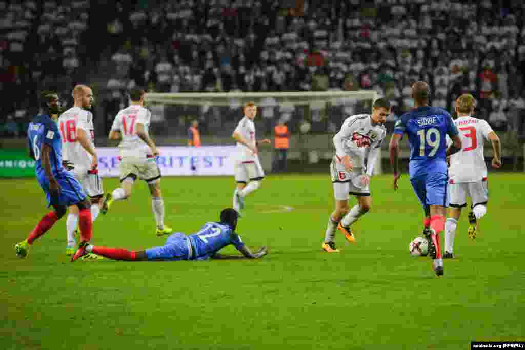 Зборная Беларусі па футболе стартавала ў кваліфікацыйным турніры да чэмпіянату сьвету 2018 году. Першым супернікам беларусаў на «Барысаў-Арэне» была каманда Францыі, фіналістка нядаўняга эўрапейскага першынства. Матч скончыўся ўнічыю - 0:0.
