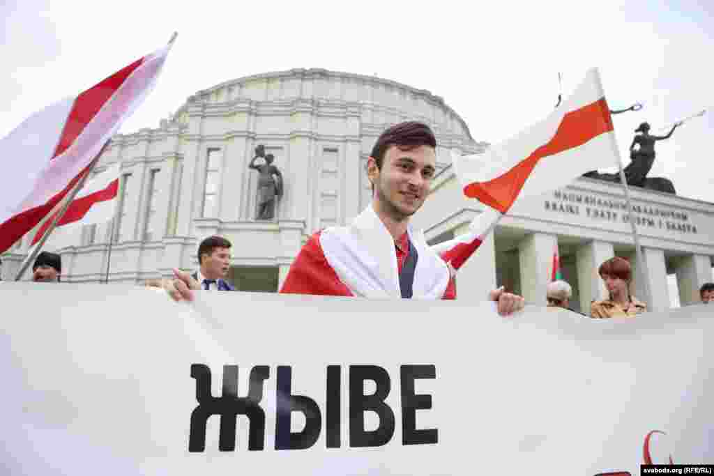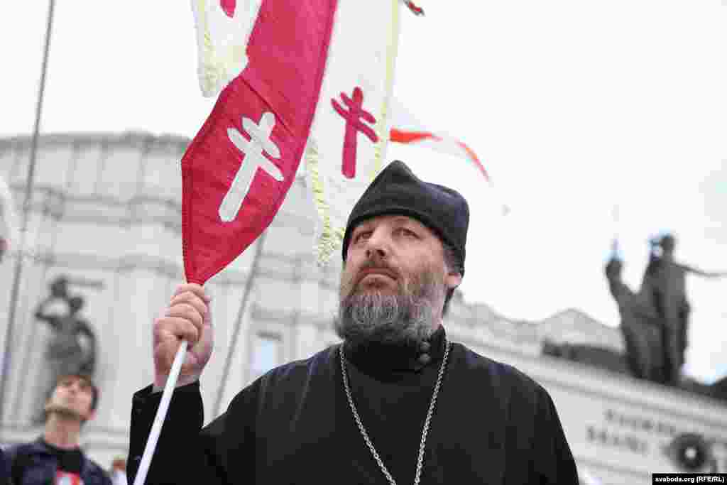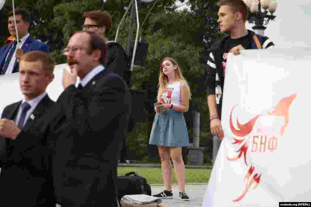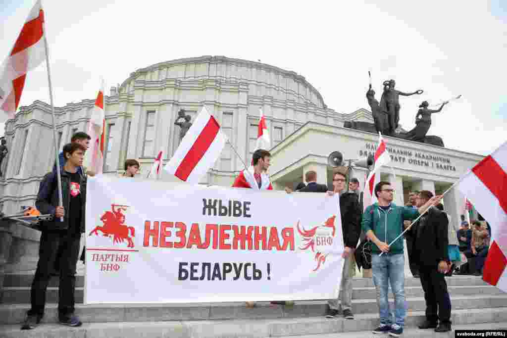 Сьвяточны мітынг, прымеркаваны да дня перамогі пад Воршай у 1514 годзе, зарганізаваны Партыяй БНФ прайшоў на прыступках перад Опэрным тэатрам у Менску.