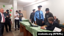 Літаральна ў апошнюю хвіліну ў залю для галасаваньня ўбягае жанчына, якая яўна сьпяшалася прагаласаваць. Уражаная колькасьцю журналістаў і фатографаў, яна тэлевізійна закідвае ў скрыню бюлетэнь.