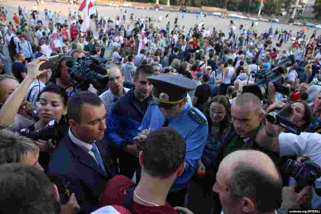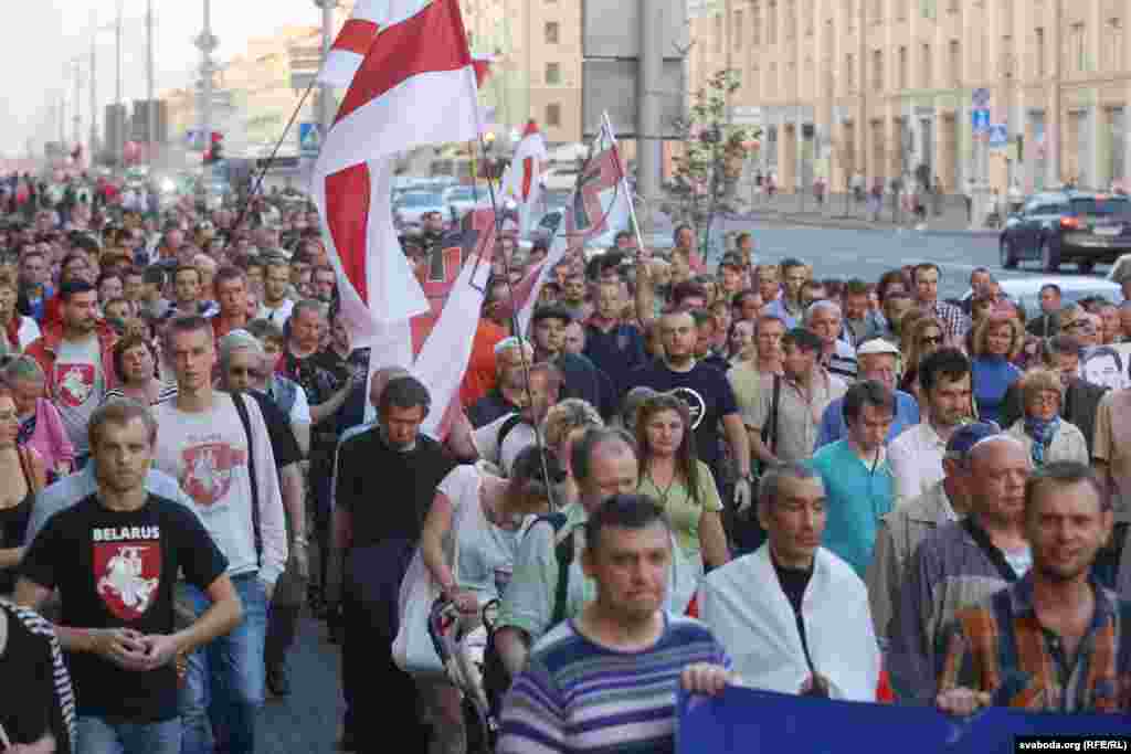 12 верасьня а 18-й гадзіне на заклік лідэра БСДП («Народная грамада»), кандыдата ў прэзыдэнты 2010 году, былога палітвязьня Мікалая Статкевіча на Кастрычніцкую плошчу ў Менску выйшлі людзі пратэставаць супраць фальсыфікацыі выбараў.