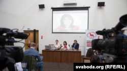 Ганна Канапацкая з Аб’яднанай грамадзянскай партыі, якая стала дэпутатам Палаты прадстаўнікоў, правяла першую прэсавую канфэрэнцыю сумесна зь лідэрам партыі Анатолем Лябедзькам.