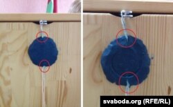 У нас ёсьць фотадоказ таго, што скрынку для датэрміновага галасаваньня на ўчастку нумар 5 адчынялі. Мы зрабілі здымак пячаткі ўвечары, а потым ізноў на другі дзень. Адназначна бачна, што пячатка сапсаваная.