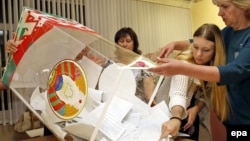 Галасаваньне на ўчастку №6 Гомельскай-Цэнтральнай выбарчай акругі. Гомель, 11 верасьня 2016 году