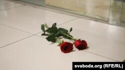 Кветкі на месцы забойства ў ГЦ «Эўропа». ФОТА