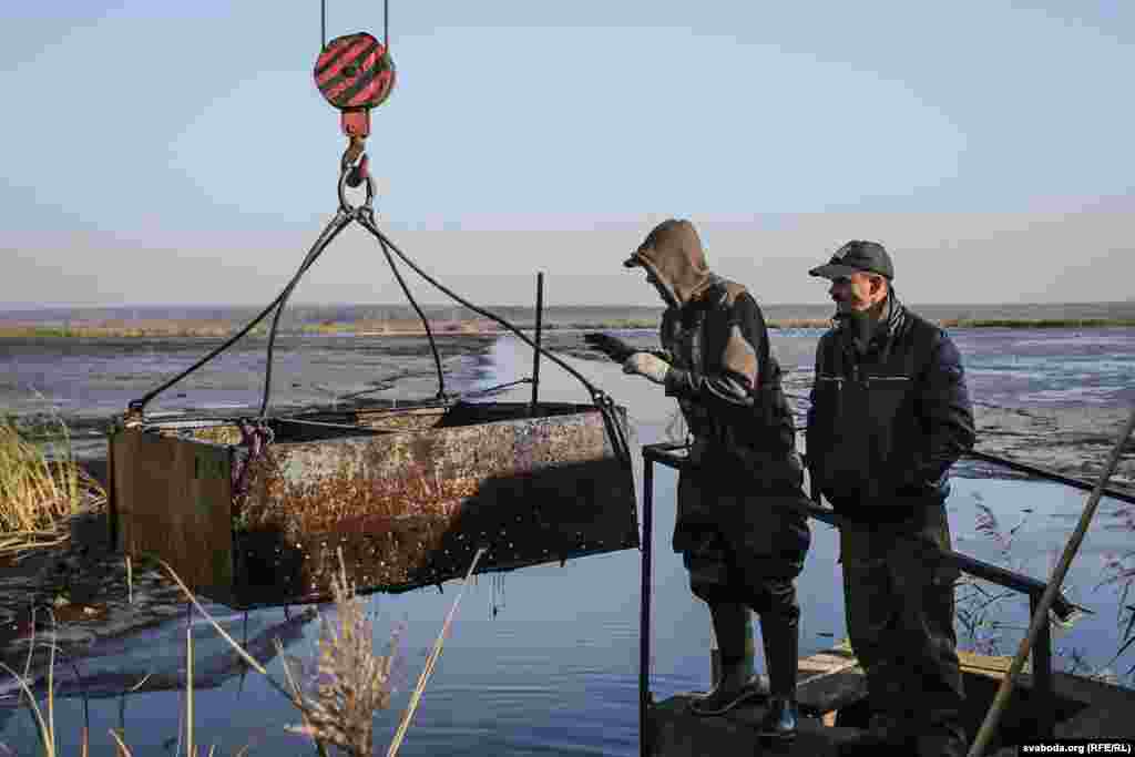 Пасьля рыбу вылаўліваюць, каб далей перавезьці яе на зіму ў больш прыстасаваную сажалку.