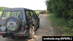 Празь вёску вядзе разьбітая асфальтава-брукаваная дарога. Уся на дзірках. Празь некалькі сотняў мэтраў паварочваем каля невялікай крамы ўлева і палявой дарогай едзем у бок лесу.