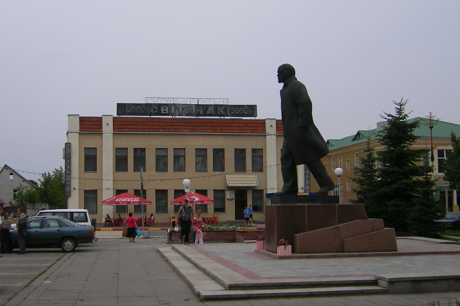 "Помнік Леніну раней стаяў перад будынкам райвыканкаму. Але пасьля рэканструкцыі плошчы Леніна прыбралі, а на месцы помніка зрабілі кветнік.