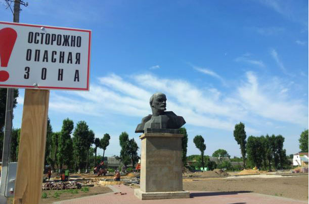 Леніна, што раней стаяў на цэнтральнай плошчы, схавалі за домам афіцэраў