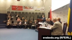 У залі, якую прадставіла Гандлёва-эканамічная палата Ўкраіны (яе кіраўнік Генадзь Чыжыкаў — ганаровы старшыня Ўсеўкраінскага саюза беларусаў, ён нарадзіўся ва Ўкраіне, але мае беларускія карані па бацьку) сабраліся пераважна людзі сталага ўзросту, прычым большасьць зь іх — былыя вайскоўцы. Рыторыка прамоў — адпаведная. Адзін з гасьцей з трыбуны заявіў, што лічыць захаваньне Беларусьсю абрэвіятуры і структуры КДБ — вялікім дасягненьнем. А прывітаньне былога пасла Ўкраіны ў Беларусі Ігара Ліхавога «Слава Украіне! Жыве Беларусь!» заля ўспрыняла моўчкі.
