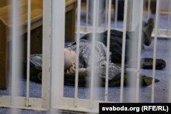 Кондрусь паклаўся на падлогу ў «клетцы». Сказаў, будзе ляжаць увесь працэс на знак пратэсту супраць суду.