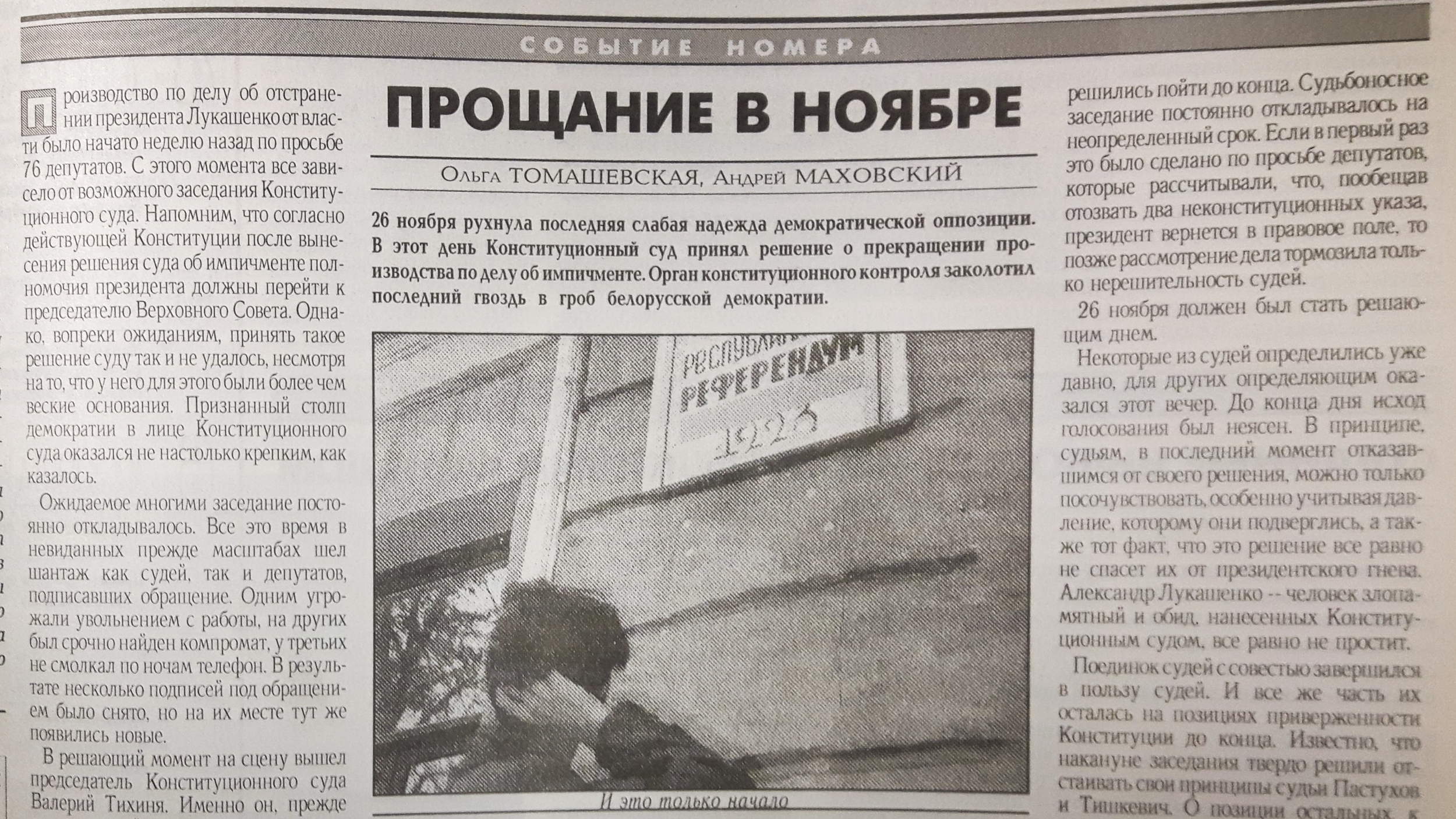 Публікацыя БДГ пра рэфэрэндум у лістападзе 1996 года