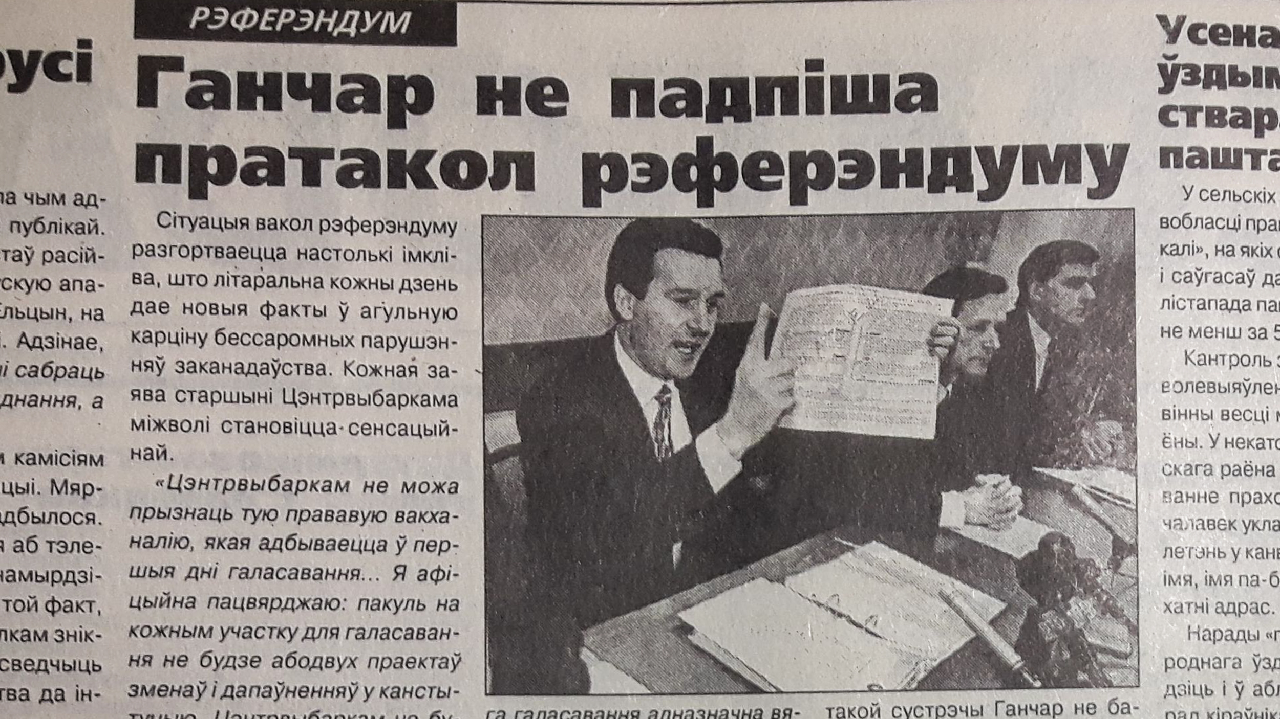 Віктар Ганчар, старшыня ЦВК і дэпутат Вярхоўнага Савету, увесь час нагадваў пра парушэньні, якія суправаджалі рэфэрэндум. Публікацыя газэты “Свабода”