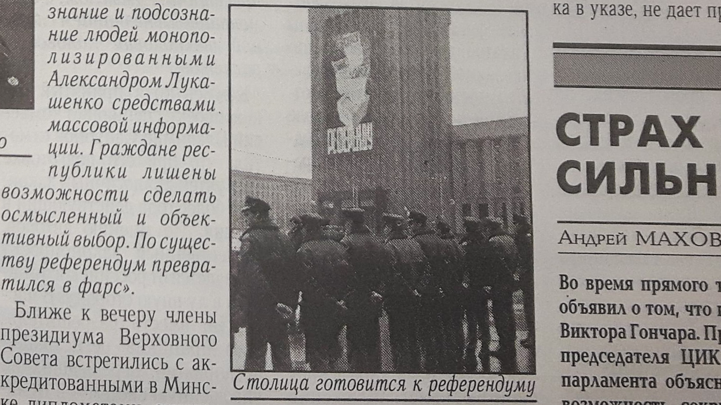 Рэфэрэндум праходзіў абсалютна некантралявана. Ужо тыдзень таму з пасады старшыні Цэнтральнай выбарчай камісіі гвалтоўна зьнялі дэпутата Віктара Ганчара. Яго літаральна вынесьлі з уласнага кабінэту на асабісты загад Аляксандра Лукашэнкі.