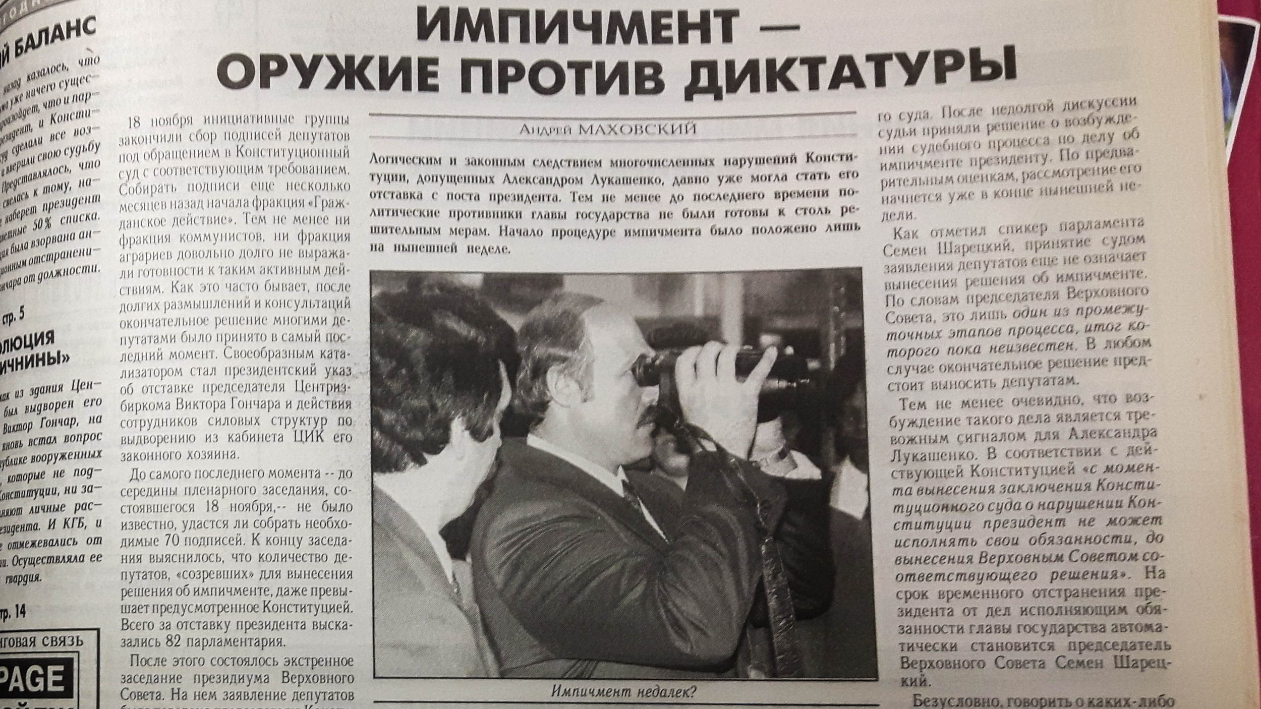 «Я судзіўся зь ім, дамогся разгляду гэтага пытаньня. А калі выбралі Вярхоўны Савет XIII скліканьня, новае кіраўніцтва адклікала ўсе мае хадайніцтвы. Яны хацелі знайсьці паразуменьне з Лукашэнкам. І думалі, што ім удасца».