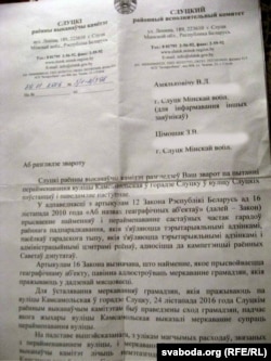 Дарэчы, пра сход грамадзян па месцы жыхарства актывістка Зінаіда Цімошак, якая перадала калектыўны зварот у Слуцкі райвыканкам, даведалася толькі з афіцыйнага адказу.