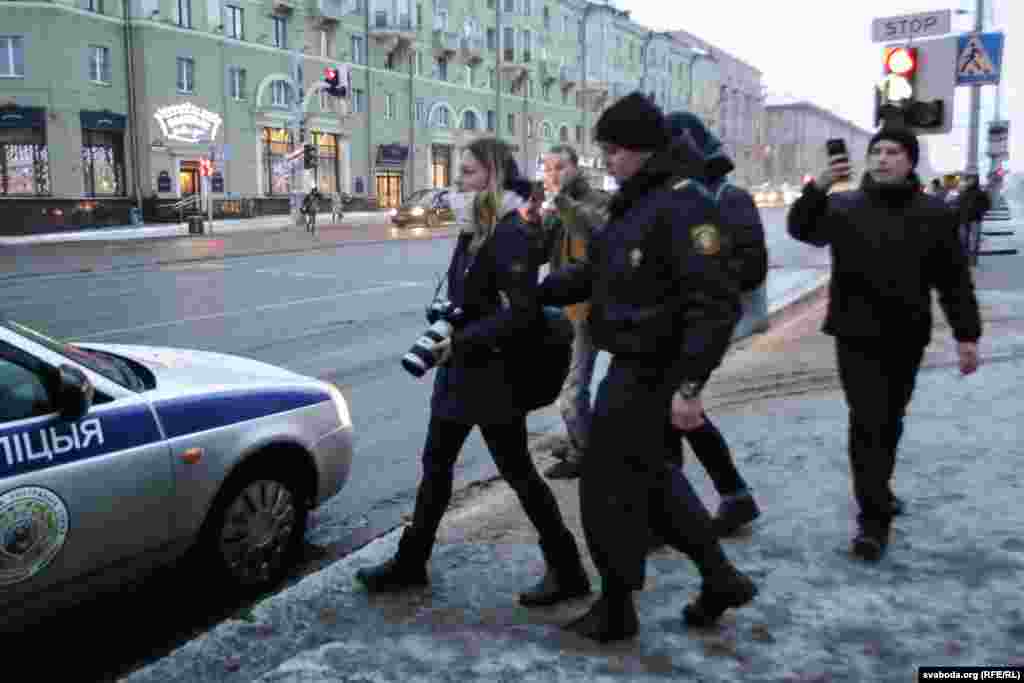 Падчас акцыі былі затрыманыя апэратарка «Нашай Нівы» Ірына Арахоўская і журналіст «Нашай Нівы» Мікіта Недаверкаў.