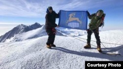 Разам зь дзяржаўным сьцягам Вадзім Фралоў узяў з сабой на Вінсан сьцяг роднай Гародні. Кажа, для яго гэта было вельмі важна.