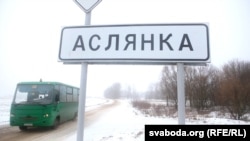 У Асьлянку мы ўяжджаем пад каталіцкія Каляды па зьледзянелай, але расчышчанай дарозе. Бачым закінутыя дамы, вялізны і такі ж закінуты будынак з надпісам «Дорожи честью школы», з рэдкіх двароў брэшуць сабакі, а па адной з вуліц чухае дапатопны трактар з малочнымі бітонамі.