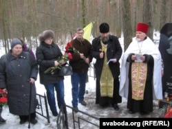 Жалобная імпрэза пачалася з малітвы сьвятара Беларускай праваслаўнай аўтакефальнай царквы айца Леаніда Акаловіча і ягонага калегі за спакой душы забітага ў Кіеве на Майдане Міхася Жызьнеўскага.