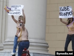 19 сьнежня 2011 году актывісткі Femen Іна Шаўчэнка, Аксана Шачко і Аляксандра Нямчынава правялі ў Менску акцыю каля будынку КДБ, прымеркаваную да гадавіны прэзыдэнцкіх выбараў 2010 году і брутальнага разгону антыпрэзыдэнцкіх пратэстаў. Дзяўчаты з Femen распрануліся і разгарнулі плякаты з надпісамі «Жыве Беларусь!» і «Свабоду палітвязьням!» На тварах у іх былі накладныя чорныя вусы, а ў адной на сьпіне намаляваны партрэт, які нагадваў Аляксандра Лукашэнку.