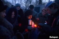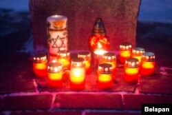 Людзі маліліся ля мэмарыялу ахвярам, запальвалі памінальныя сьвечкі ля помнікаў дэпартаваным і забітым габрэям.