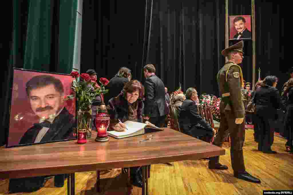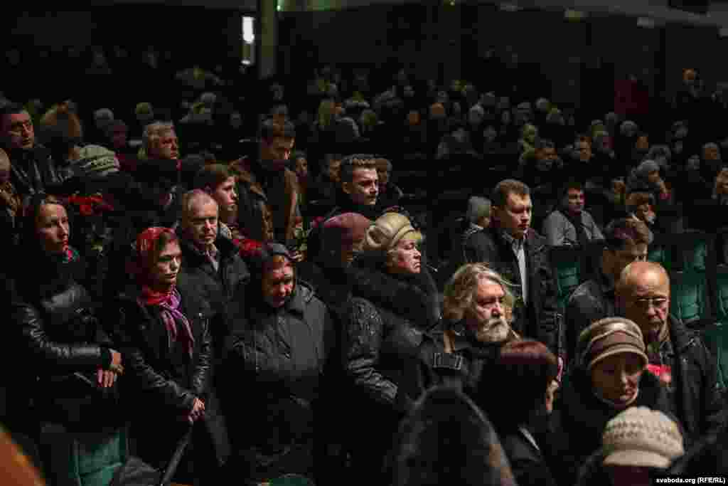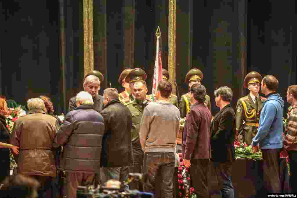 Затым працэсія накіравалася ў Беларускую дзяржаўную філярмонію, дзе да 14-й гадзіны праходзіла грамадзянская паніхіда, якую наведалі сотні людзей.
