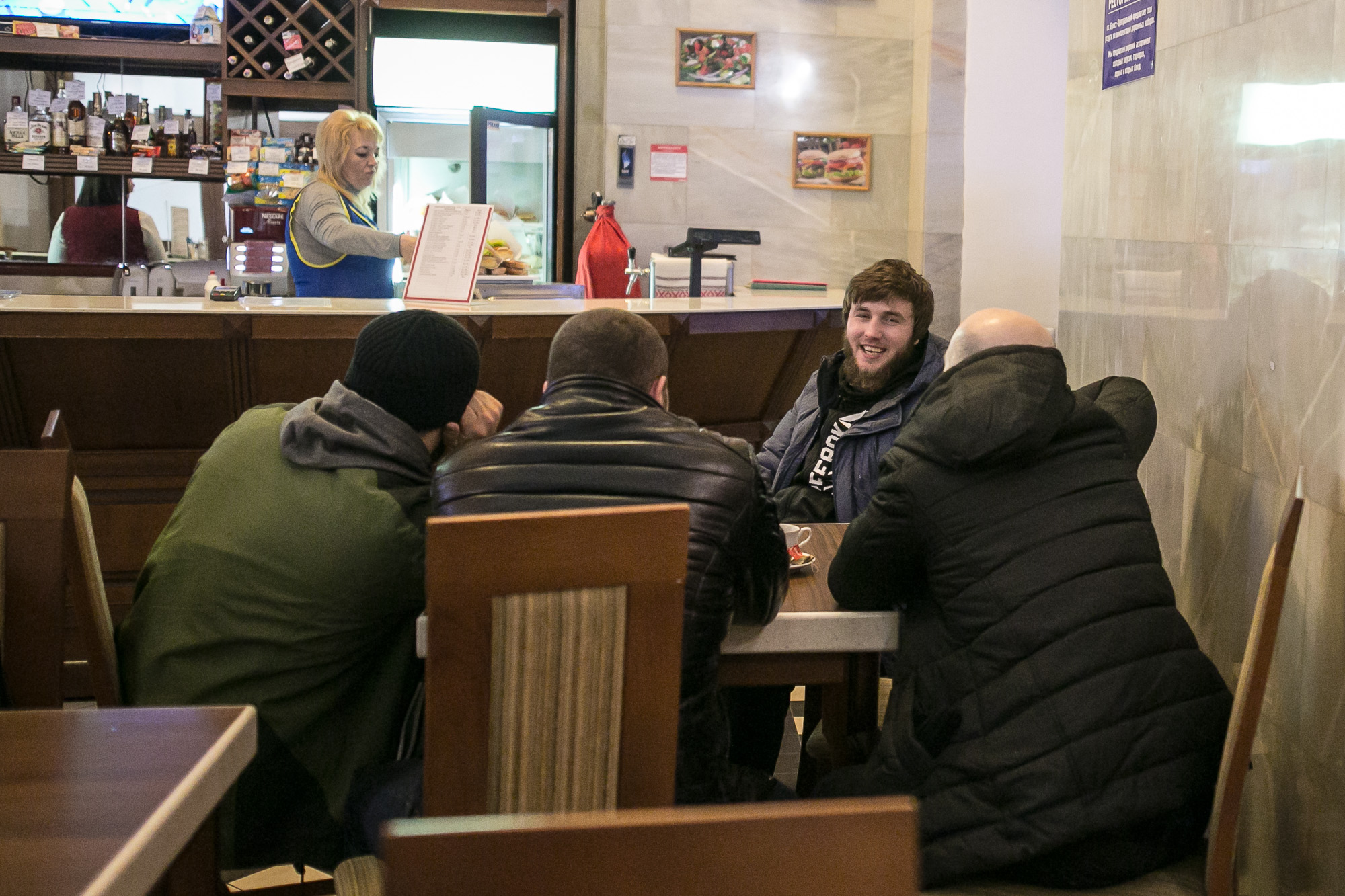 «На вакзале цяпер холадна спаць, — кампанія з паўтузіна чачэнскіх маладзёнаў ахвотна ўступае ў размову. — Дзеці ў некаторых хварэлі, дык людзі ўжо кватэры наймаюць».