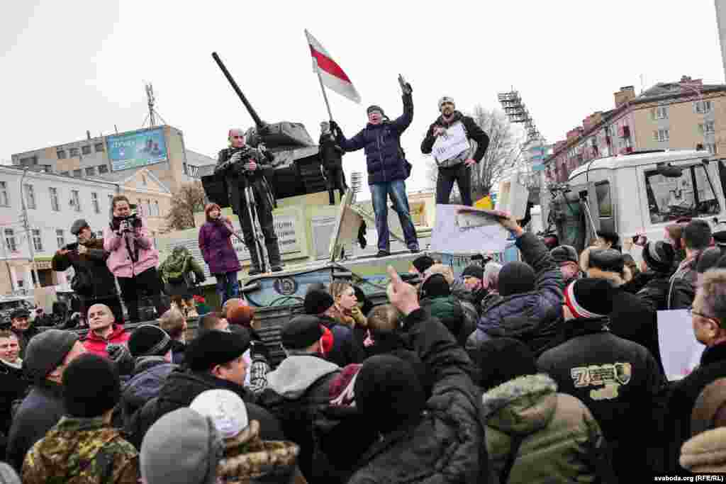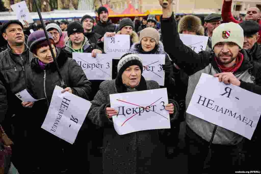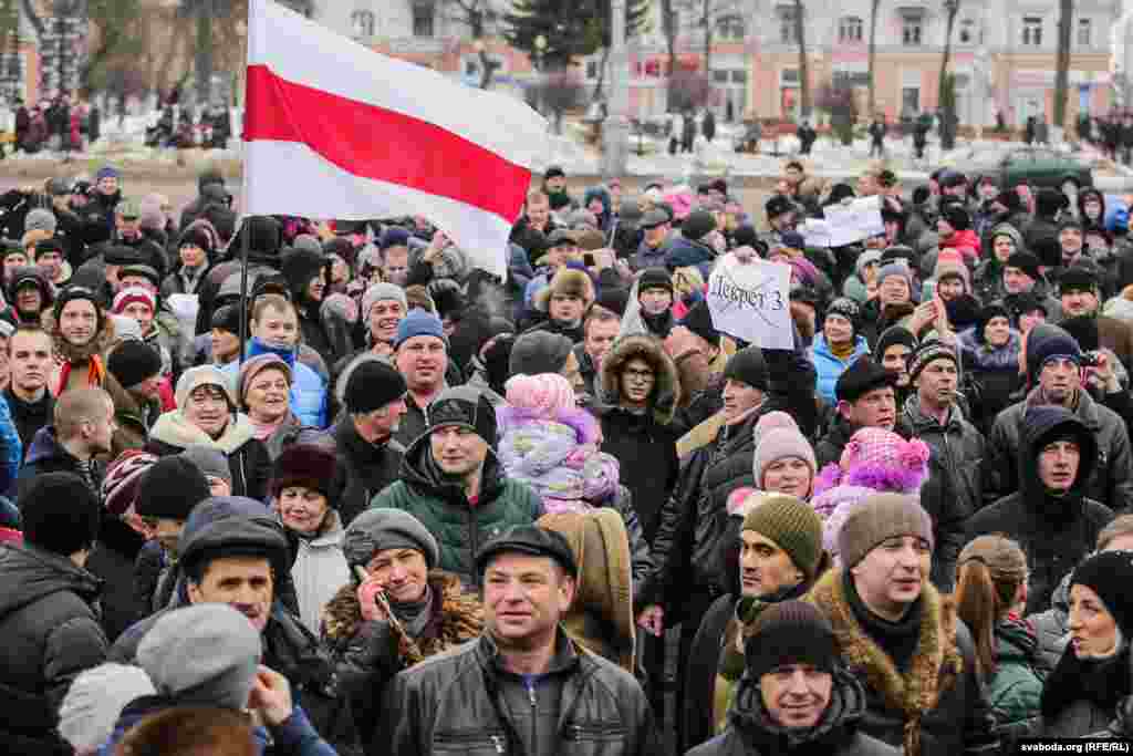 Дэмакратычныя сілы праводзяць у Гомлі акцыю супраць Дэкрэту № 3 (так званы «дэкрэт ад дармаедах») нягледзячы на забарону гарадзкіх уладаў.