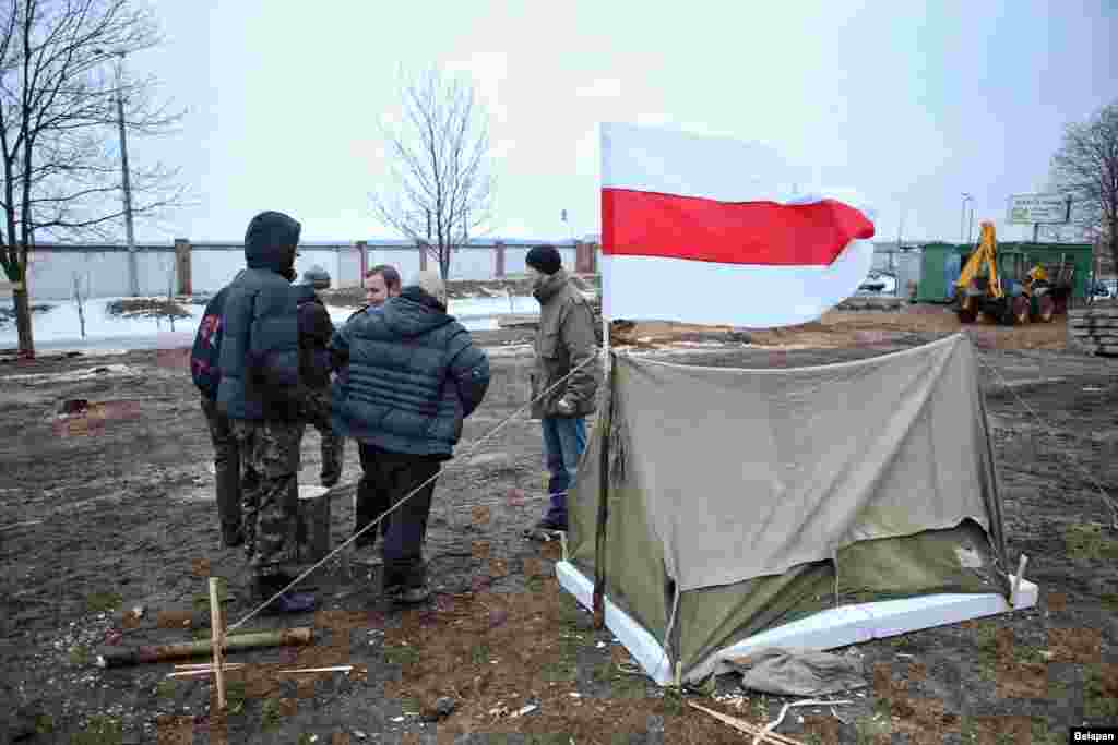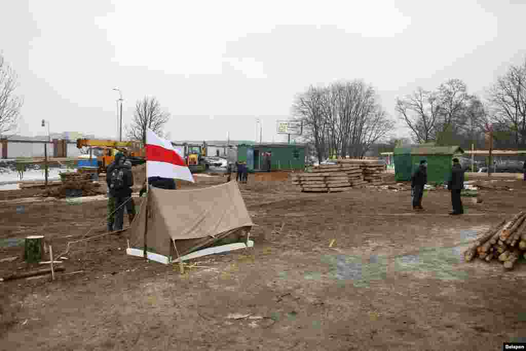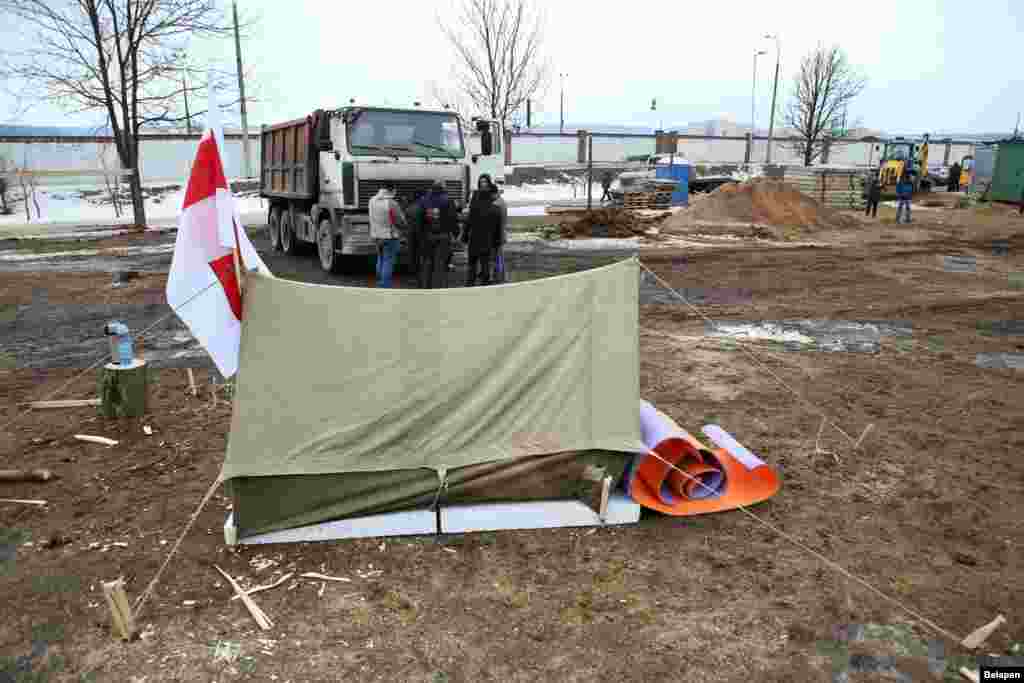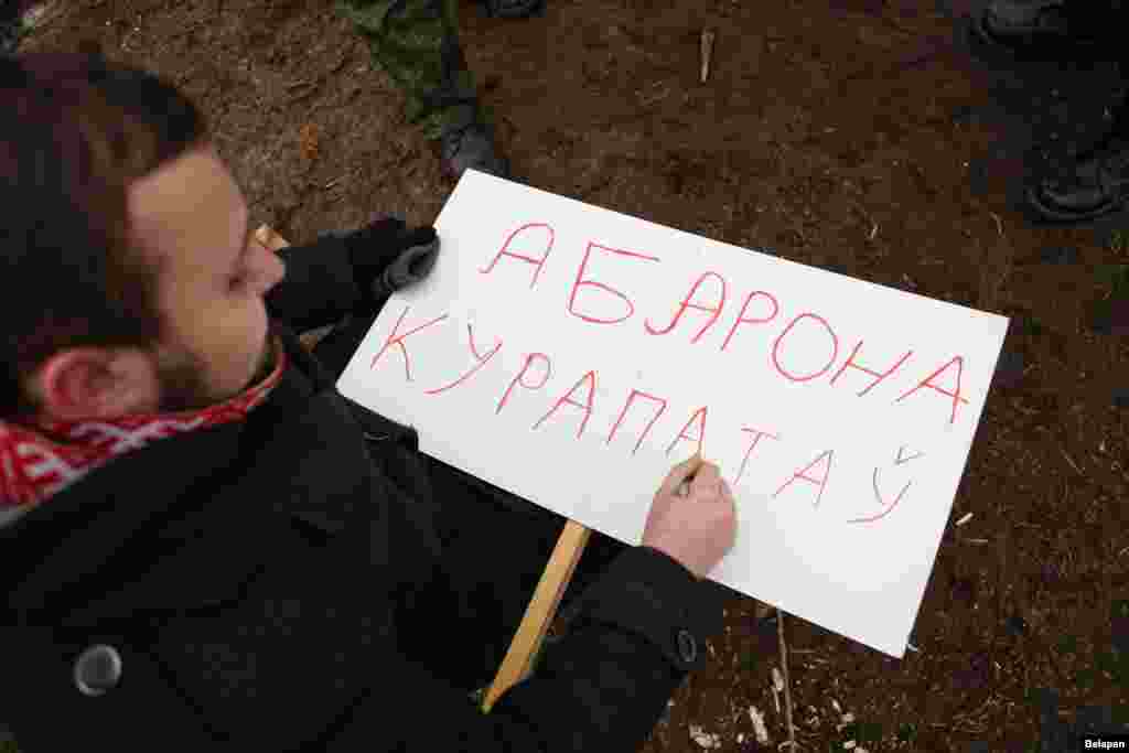 На поўначы Менску зранку 20 лютага актывісты праводзяць пратэст супраць высечкі дрэваў і пачатку будаўніцтва офісанага цэнтру за некалькі дзясяткаў мэтраў ад Курапатаў — месца пахаваньня ахвяраў сталінскіх рэпрэсіяў.