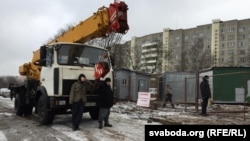 Пасьля таго, як на будоўлі зьявіліся журналісты, будаўнічыя работы фактычна спыніліся, кажуць актывісты. Яны затрымалі машыну з будаўнічымі матэрыяламі, якая кіравалася на пляцоўку. Будаўнікі спрабавалі разгружаць матэрыялы ўручную, але перасталі.