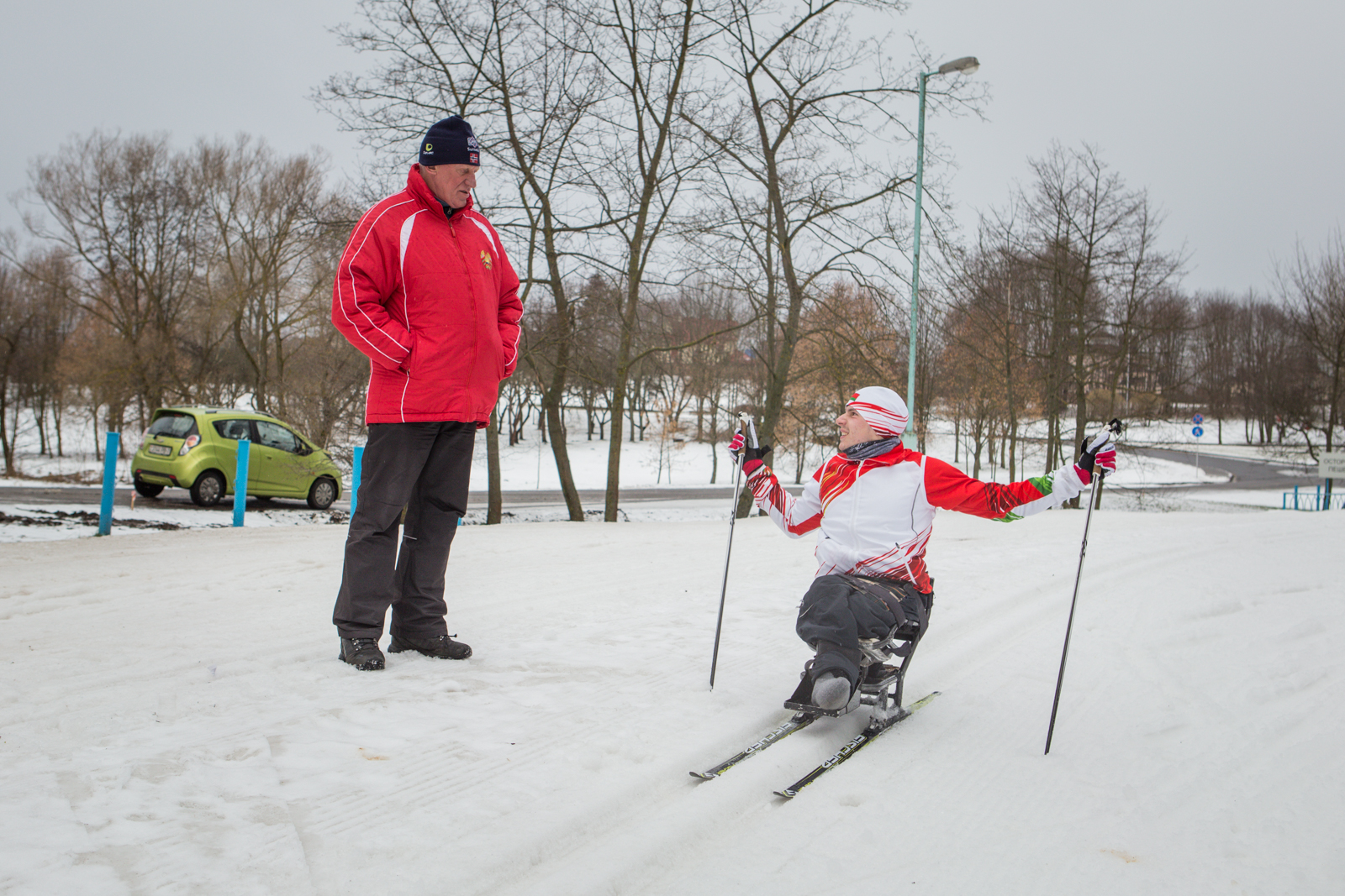 «Тут свая спэцыфіка. Зусім іншыя функцыянальныя магчымасьці ў вучня. У здаровых лыжнікаў тэхніка скіраваная ў першую чаргу на ногі, а гэтыя рухаюцца толькі за кошт рук. Таму рукі павінны быць вельмі моцныя. Ім, вядома, цяжка займацца спортам, у якім здаровыя дзейнічаюць за кошт ног. Але, я думаю, тыя, хто чагосьці тут дасягае, проста не зацыкліваюцца на гэтым».