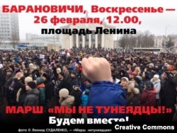 «Мы далучаемся да агульнанацыянальнай кампаніі супраць неканстытуцыйнага дэкрэту № 3. Зьбіраемся 26 лютага ў 12.00 на плошчы Леніна, каб аб’яднацца і мірна выказаць уладам свой пратэст».