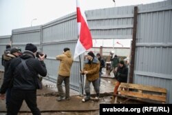Пратэстоўцы напружана чакаюць будаўнічую тэхніку, зьбіраюцца замінаць яе праезду.