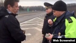 Супрацоўнікі ДАІ падазраюць, што аўтамабіль у вышуку, прапануюць праехаць і актывістам. Але яны адмаўляюцца, спрабуюць «злавіць» машыну, каб даехаць у Берасьце.