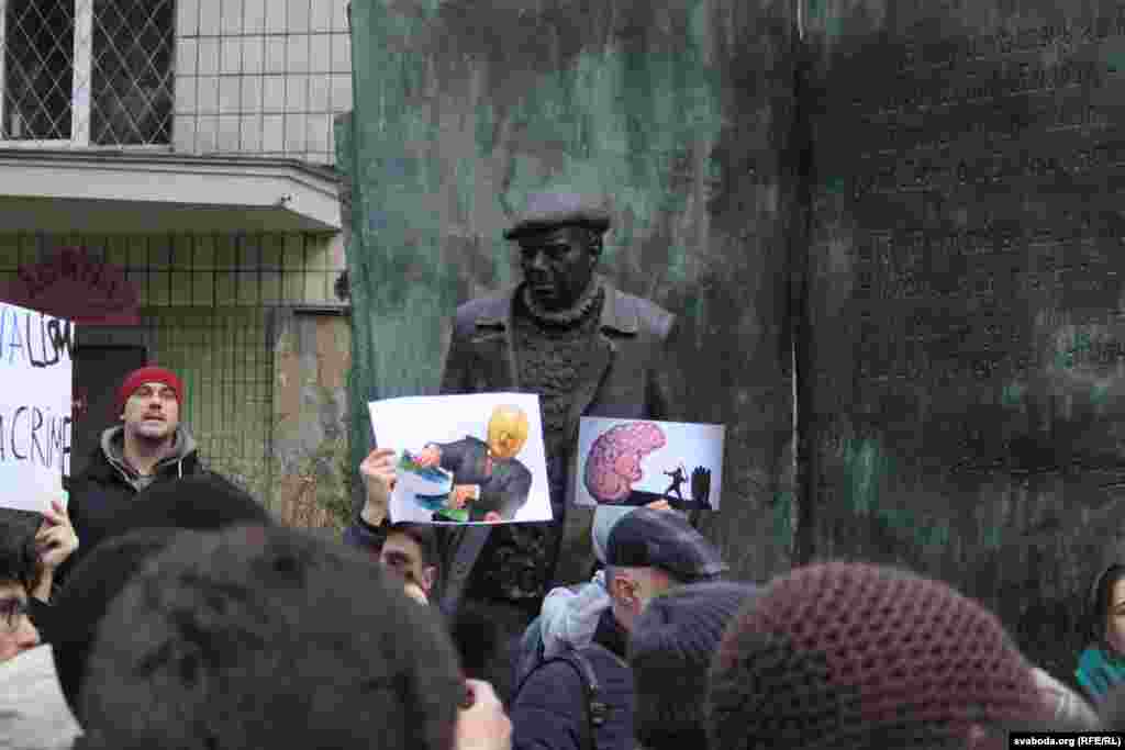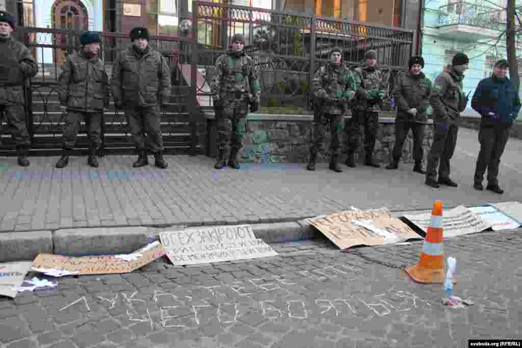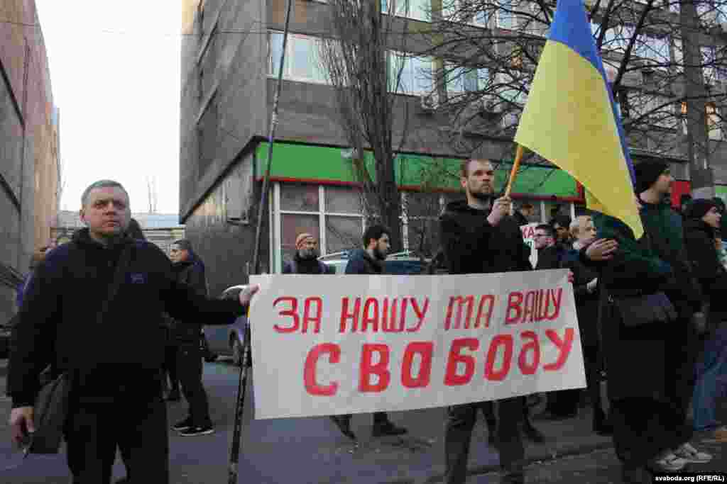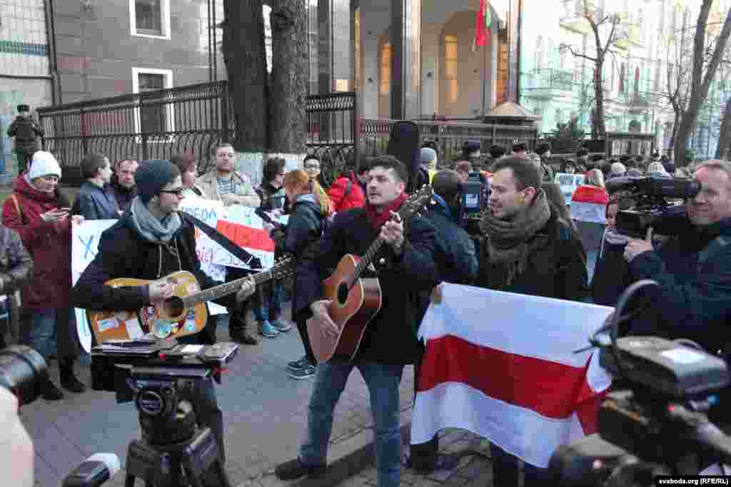 Былі тут і беларусы, якія вымушана жывуць у Кіеве. На акцыі прагучалі патрабаваньні да міжнародных структураў паўплываць на беларускую ўладу, і вызваліць палітзьняволеных.Таксама акцыі салідарнасьці адбыліся ў Харкаве ды Львове.