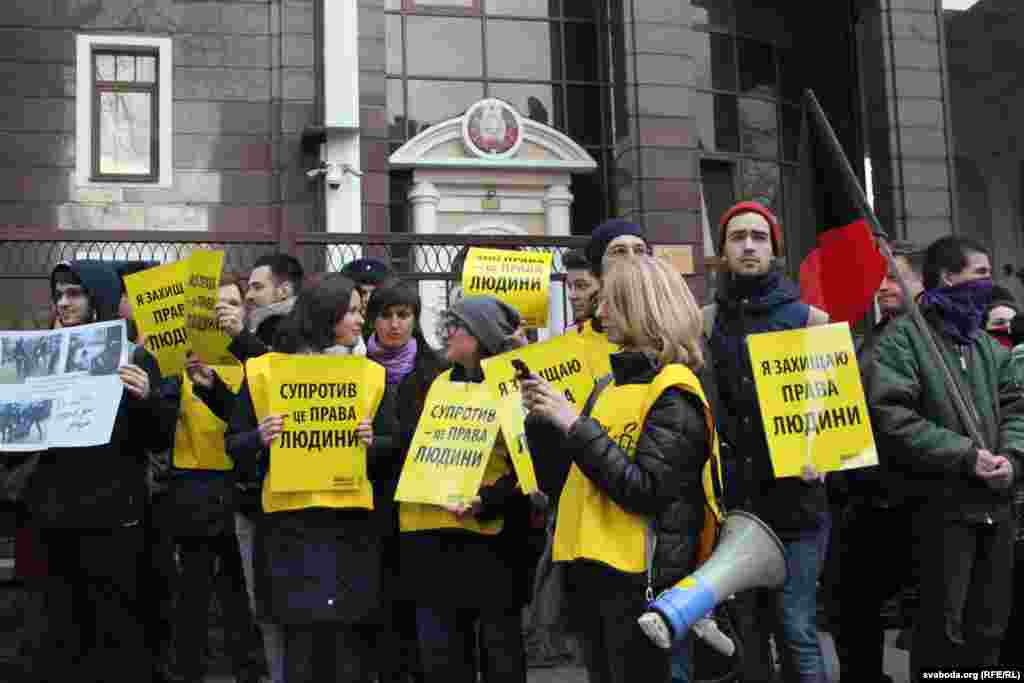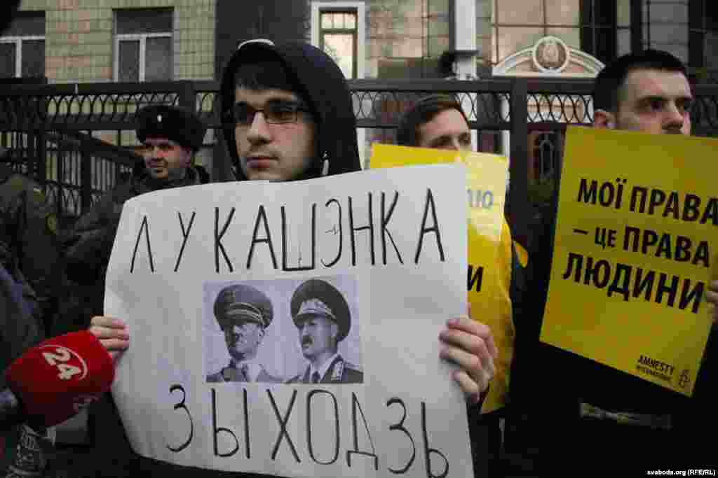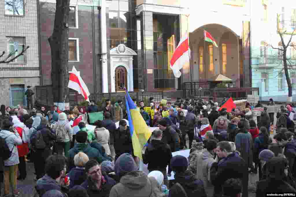 Сотні чалавек пікетавалі беларускую амбасаду ў Кіеве