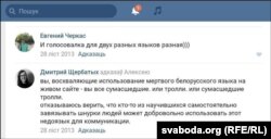 «Белорусский язык — это разлагающий и загнивающий труп, который уже давно порабы закопать поглубже!», чым парушыў артыкул 9.22 «Парушэньне заканадаўства аб мовах» Кодэксу аб адміністрацыйных правапарушэньнях Рэспублікі Беларусь, публічна абразіўшы дзяржаўную беларускую мову.