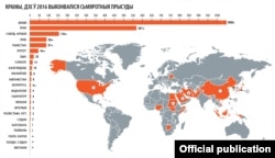 У сёлетняй справаздачы «Death Sentences and Executions 2016» праваабарончая арганізацыя Amnesty International адзначае, што ў 2016 годзе ва ўсіх дзяржавах сьвету, за выняткам Кітаю, былі выкананы ня менш за 1032 сьмяротныя прысуды.