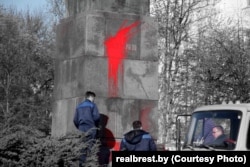 Цяпер на месцы інцыдэнту працуюць супрацоўнікі камунальных службаў, якія адціраюць фарбу, а таксама прадстаўнікі Сьледчага камітэту.