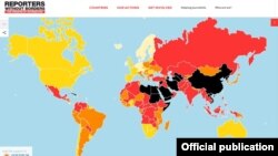 «У спробе аслабіць расейскую ўладу над Беларусьсю і выйсьці з эканамічнага крызісу рэжым прэзыдэнта Аляксандра Лукашэнкі спрабуе наблізіцца да міжнароднай супольнасьці і сьцерці свой вобраз „апошняй дыктатуры Эўропы“, — гаворыцца ў апісаньні Беларусі на сайце „Рэпартэраў бязь межаў“. — Аднак, акрамя вызваленьня палітычных зьняволеных, нічога не зьмянілася. Пазаштатныя журналісты, якія працуюць у незалежных СМІ, заснаваных за мяжой, ня могуць атрымаць акрэдытацыю і перасьледуюцца судовымі органамі. Баючыся дэстабілізацыі становішча, зьвязанай з украінскім крызісам, улады садзілі і прарасейскіх, і антырасейскіх блогераў. Вельмі мала журналістаў былі арыштаваныя або зазналі гвалт у 2016 годзе. Але зацішша скончылася ў сакавіку 2017 году, калі беспрэцэдэнтная хваля пратэстаў прывяла да вялікага разгону».
