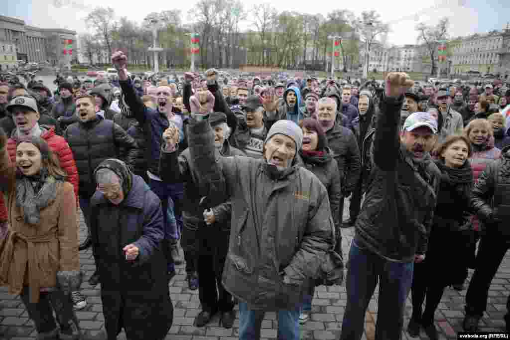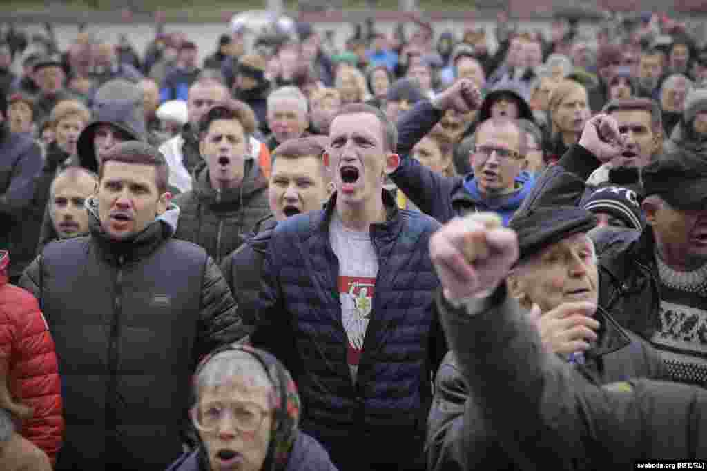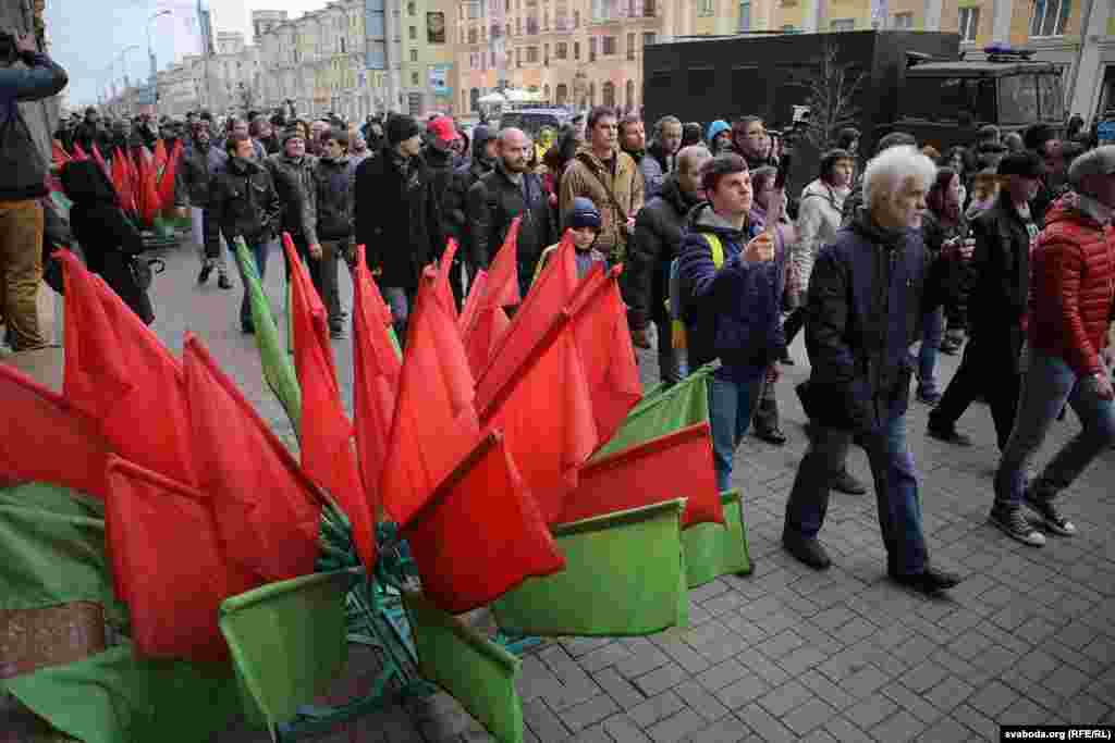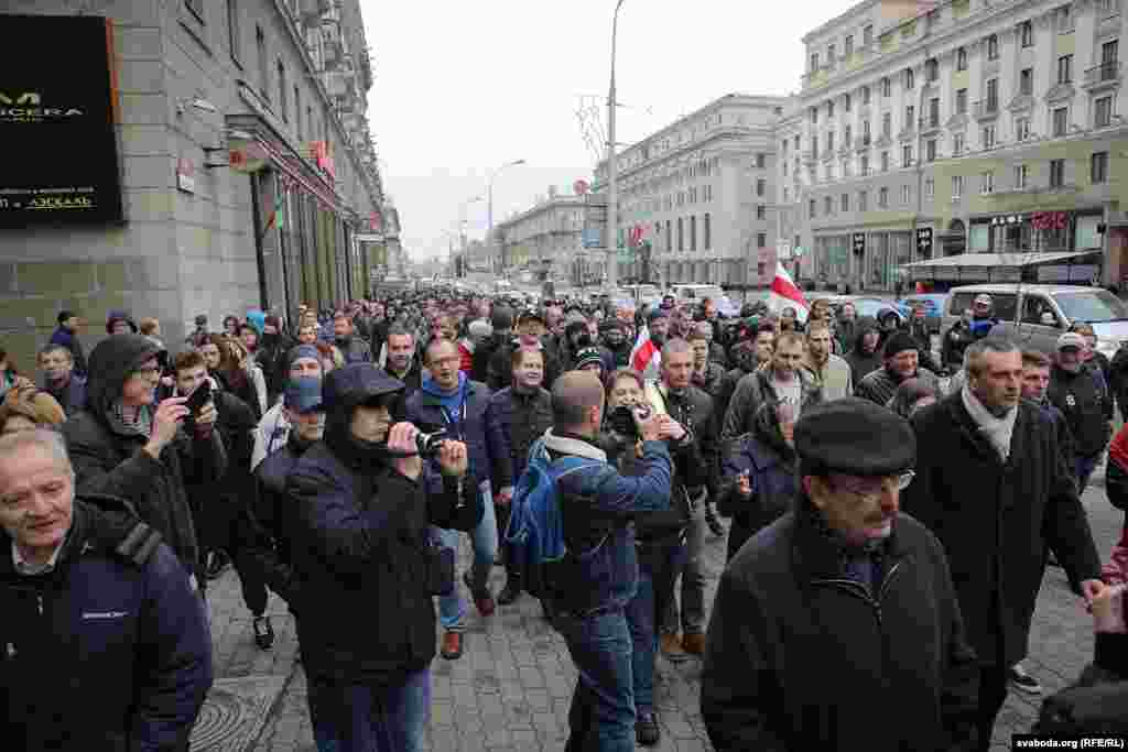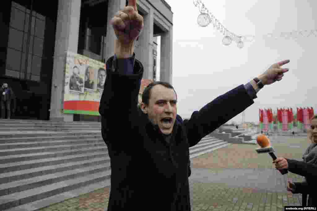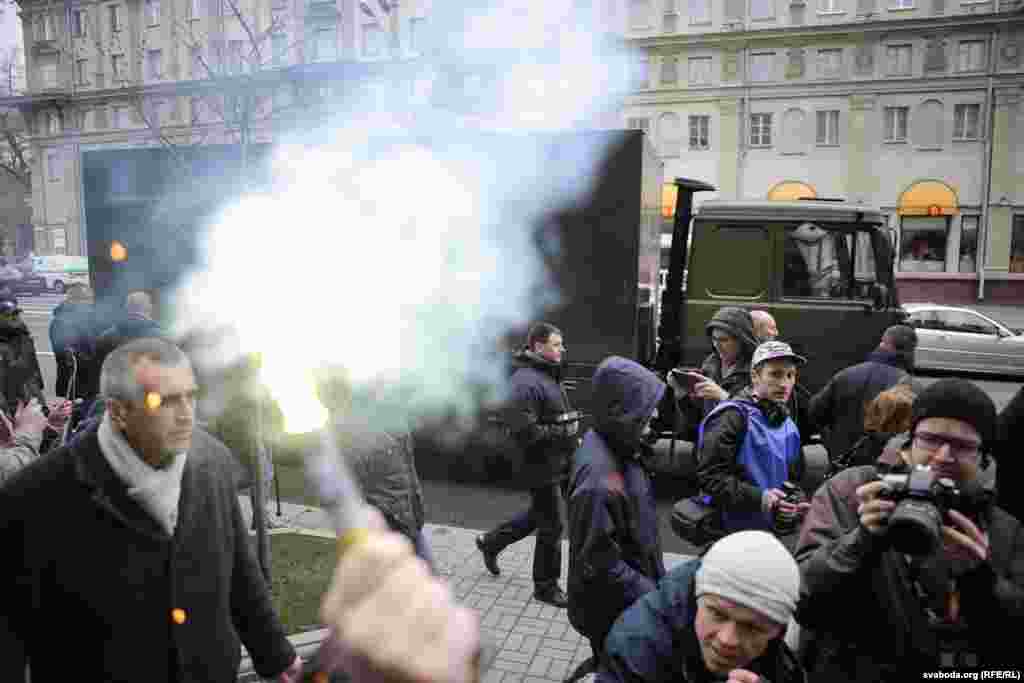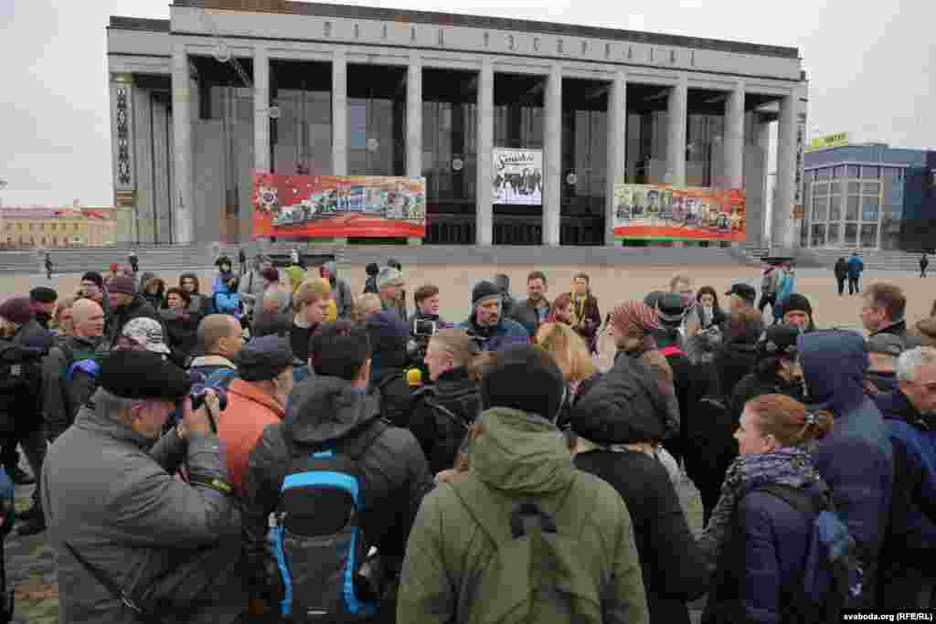 На плошчу прыйшлі палітыкі Ўладзімер Някляеў, Павал Севярынец, Вячаслаў Сіўчык, жонка затрыманага Статкевіча Марына Адамовіч, актывістка Ніна Багінская зь бел-чырвона-белым сьцягам, 84-гадовы прафэсар Мікола Савіцкі, актывісты Максім Вінярскі, Яўген Афнагель ды іншыя. Удзельнікі акцыі разгарнулі некалькі бел-чырвона-белых сьцягоў. Былі людзі і з афіцыйнымі чырвона-зялёнымі сьцягамі, а таксама з чырвоным савецкім. Міліцыянты заклікалі людзей разысьціся і пагражалі ўжываньнем фізычнай сілы і спэцсродкаў.