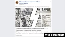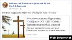 Кобрынскі музэй Суворава «разьвенчвае сьвядомых» на сваёй старонцы ў Фэйсбуку