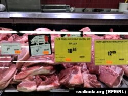 Кіляграм шыйнай часткі сьвініны каштуе таньней, чым на пачатку году, але даражэй у параўнаньні з красавіком (у студзені было 11,99, у красавіку — 9,99, у траўні — 10,69 рубля).