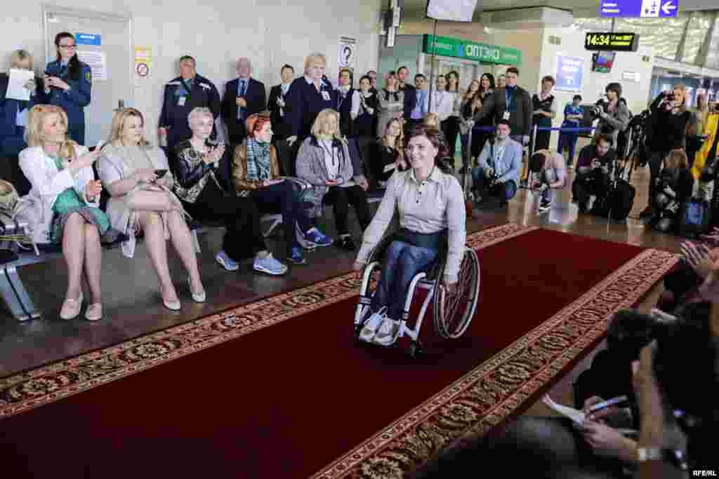 У нацыянальным аэрапорце прайшоў першы у Беларусі fashion-паказ адзеньня для вазочнікаў дызайнэркі Кацярыны Цікоты.