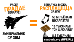 Адзін такі самалёт каштуе каля 50 мільёнаў даляраў. Можна падлічыць, што за яго Беларусь можа расплаціцца з Расеяй 16 тысячамі тон шакаляду, 53 мільёнамі пар шкарпэтак, альбо 8,2 тысячы тон цацак.
