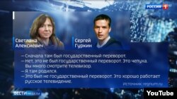 Вядоўца заявіў, што інтэрвію Алексіевіч выклікала «грандыёзны скандал», а праца Гуркіна «бліскучая»: «голымі рукамі ўзяў языка», «паказаў чорта ў шэрсьці».