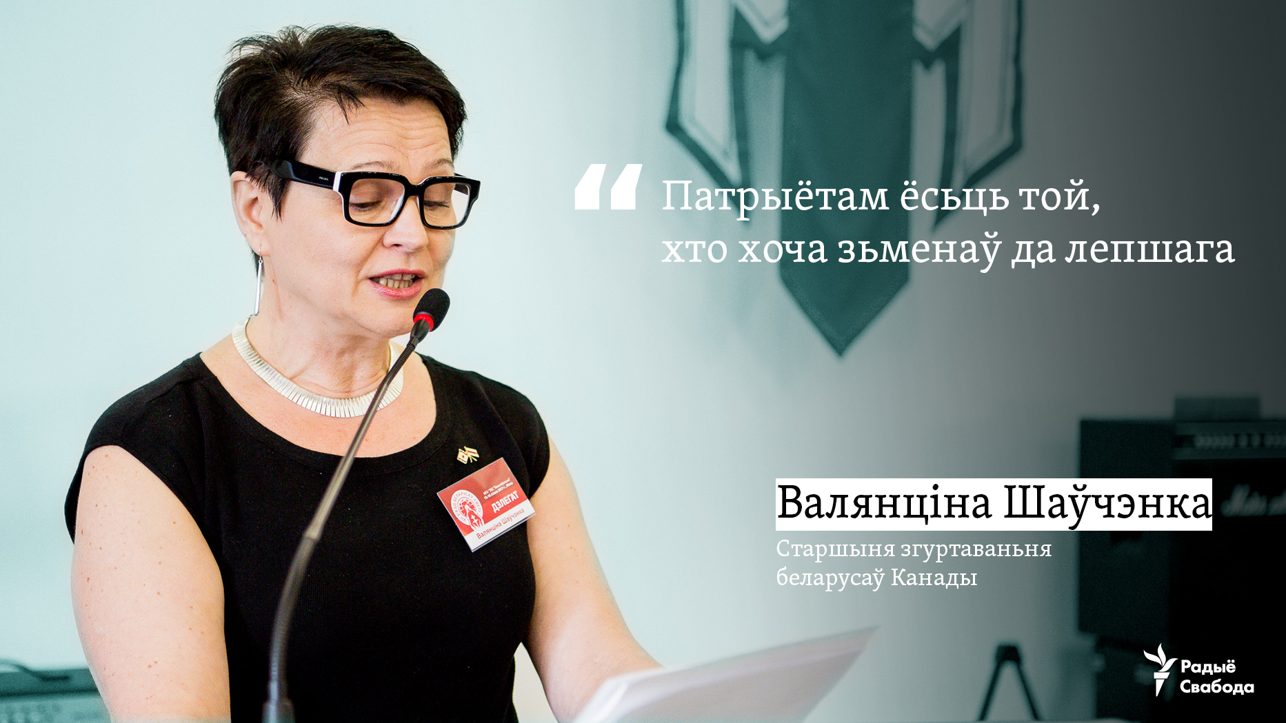 «Гэта добры зьезд, і большасьць людзей тут мне падабаецца. Пераважная большасьць. Але калі заклікаюць быць разам ахвяраў і катаў, я гэтага не ўспрымаю. А тут тыя, хто бароніць сёньняшні беларускі рэжым, яны менавіта пад такімі лёзунгамі прыйшлі на гэты зьезд. Гэта мне не падабаецца. Трэба быць шчырымі, хопіць тут гэтай хлусьні. Я гавару пра словы Макея, пра словы Краўчанкі. Цудоўна, калі ўбачыш беларуску з Канады, якая шчыра, адкрыта падкрэсьлівае, што адбываецца і чаму».