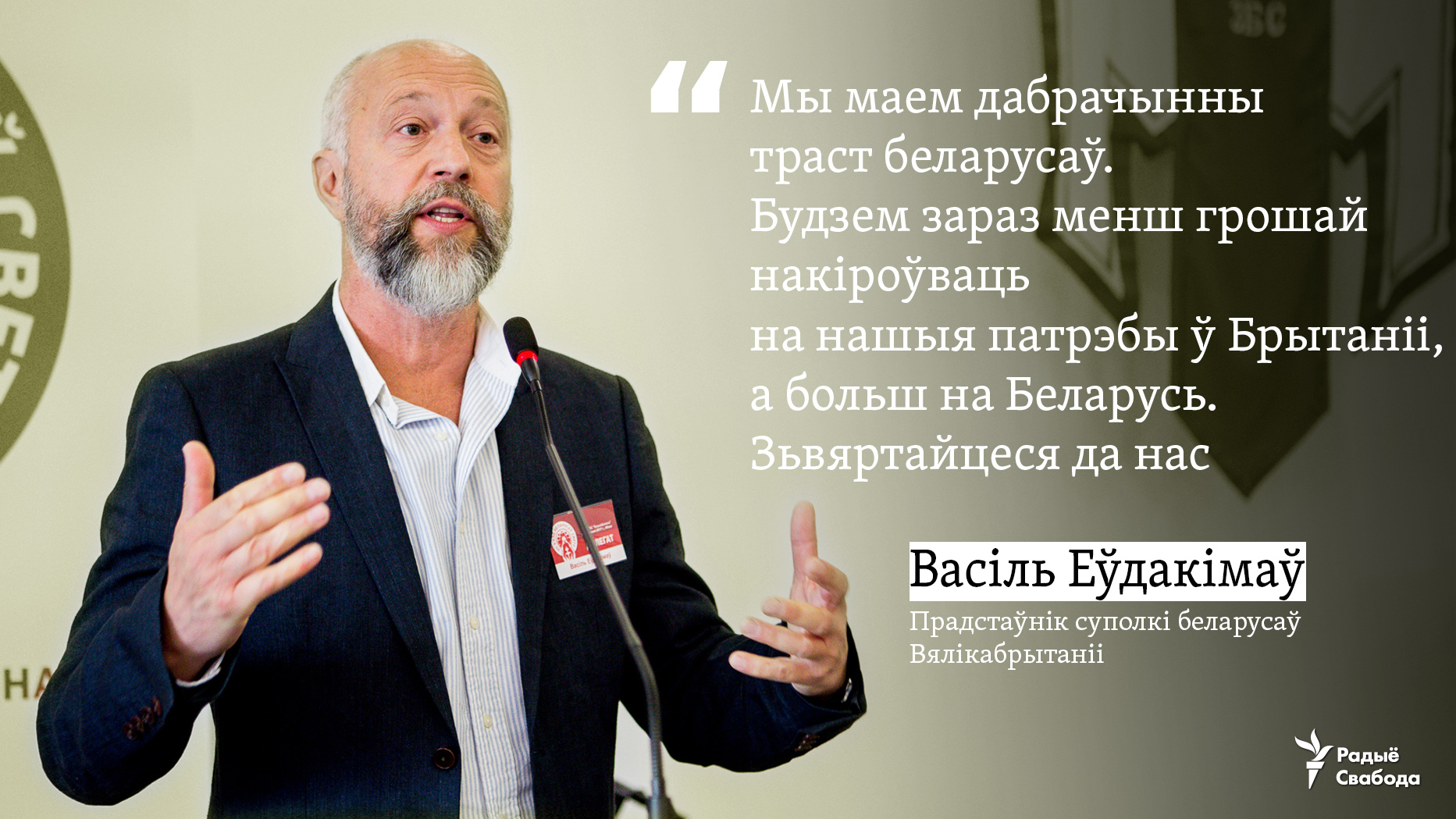 «Мы маем дабрачынны траст беларусаў у Вялікай Брытаніі. У свой час людзі сабралі грошы, уклалі іх у маёмасьць, у акцыі. І мы спансаруем беларускія кнігі, адукацыю, падзеі. Зараз мы шмат грошай накіроўваем на разьвіцьцё нашай гаспадаркі там. Будуем дамы, разбудоўваемся, каб атрымаць болей грошай. Ідэя ў тым, што будзем зараз менш грошай накіроўваць на нашыя патрэбы ў Брытаніі, а больш на Беларусь. Зьвяртайцеся да нас. З радасьцю дапаможам».